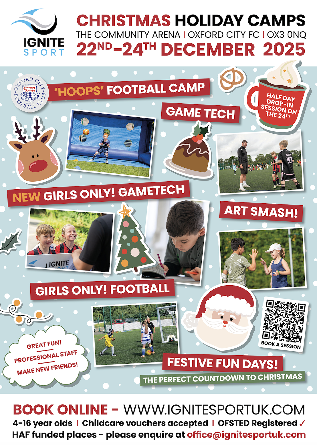 We are pleased to announce the confirmed details of our Christmas themed Match Day with family after-party here at Oxford City FC on 6th December. This day will host our Men's team at home to Darlington with loads of festive activities around it including our magical Christmas Grotto, face painting, live music, Junior & Youth player lap of honour at Half Time, mini tournaments on the pitch at the full time whistle, FREE hot chocolates OR sweet bags for our players and much more...